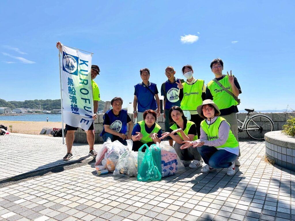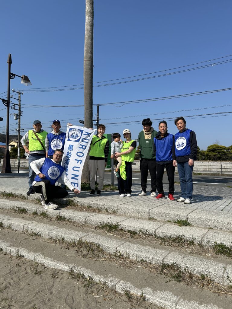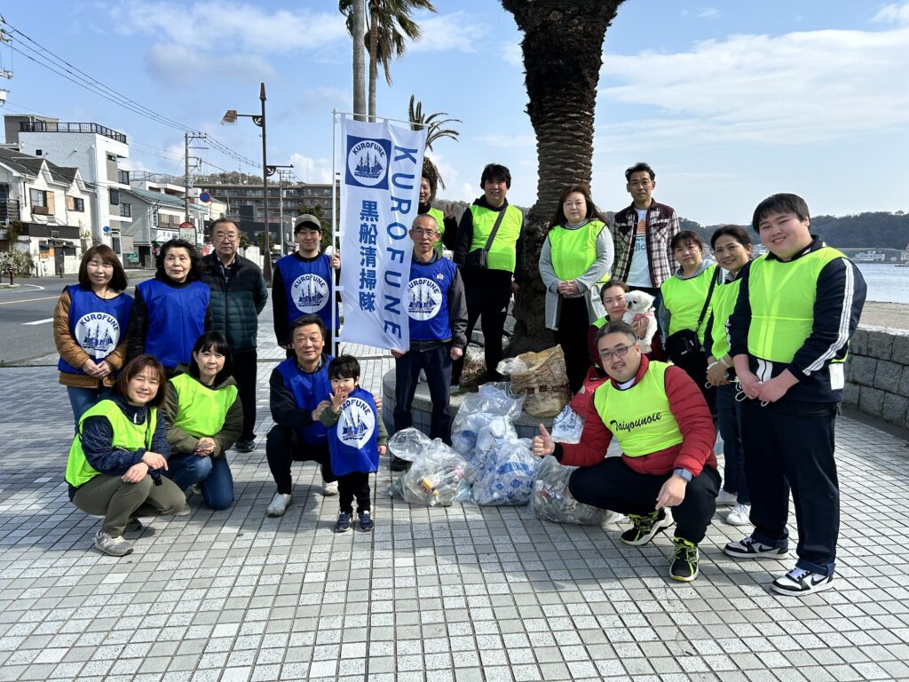 毎月、不定期開催ですが、久里浜のボランティア団体、「KUROFUNE清掃隊」の皆様と地域清掃を実施しています。場所は主に久里浜海岸、久里浜駅周辺です。きれいな街創りをめざして地域の方と協力しています!