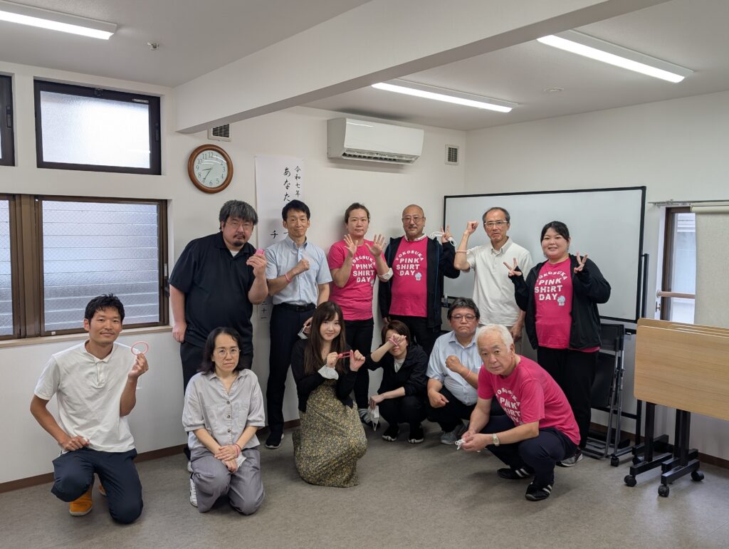 当法人ではそれに賛同し、偶数月の最終水曜日にピンクシャツデー運動を実施しております。