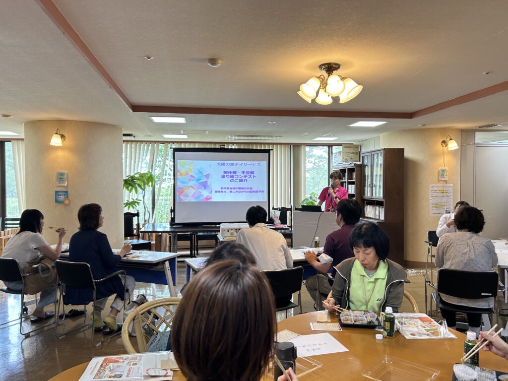 太陽の家デイサービスの職員が「出張レクリエーション」として、デイサービスで実際に行われているレクリエーション を地域の皆様に体験していただく企画に参加してきました、実際に地域の方に「デイサービスで行っていること」を体験していただき 少しでも太陽の家が身近に感じていただけたらと思います。参加された皆様、大変盛り上がり笑顔の多い時間が過ごせました! 「私たちの地域にも来てほしい」といった要望がありましたら、ぜひお問い合わせください!