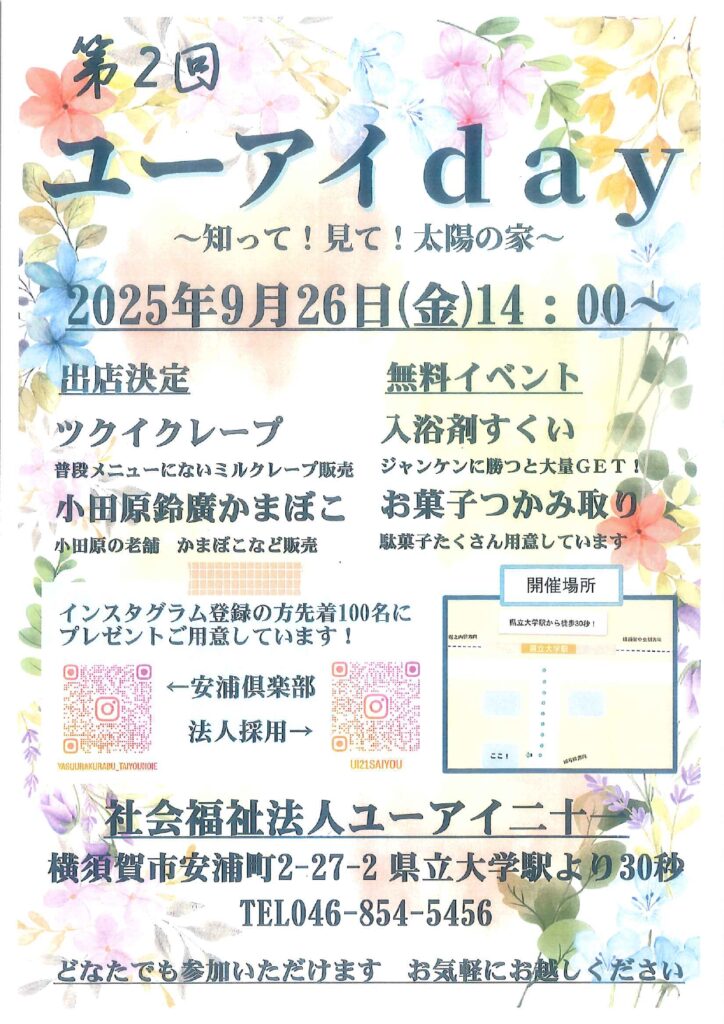 令和7年度より地域交流イベントの一環としてユーアイdayというイベントを開催いたします。