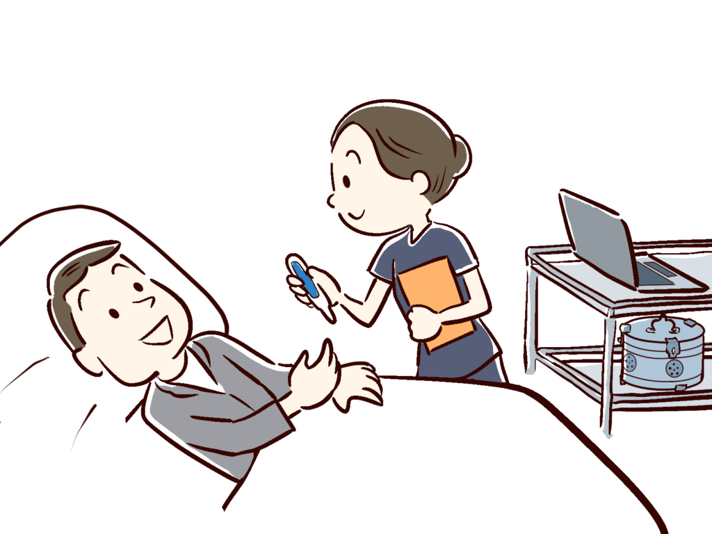 体温・体重・血圧測定の実施と通院の付き添いもご相談に応じます。