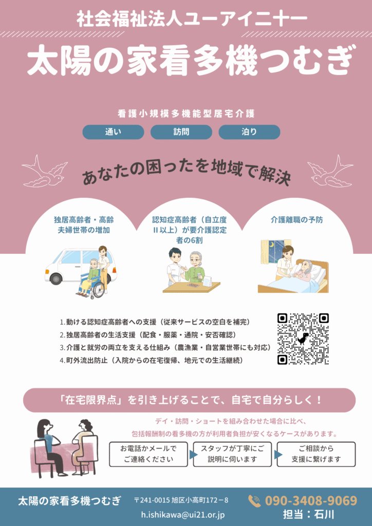 看護と介護の両面から支え、ご本人とご家族の安心した暮らしをお手伝いします。